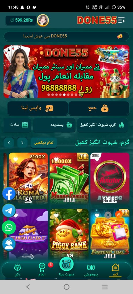 You can play multiple online games on a same platform by using a mobile game app for Android called Done 55 Game. Instead of installing many apps, you can utilize a single account to access all of the games that are accessible. After logging in, the website shows game icons, wallet balance, promotions, and support choices.